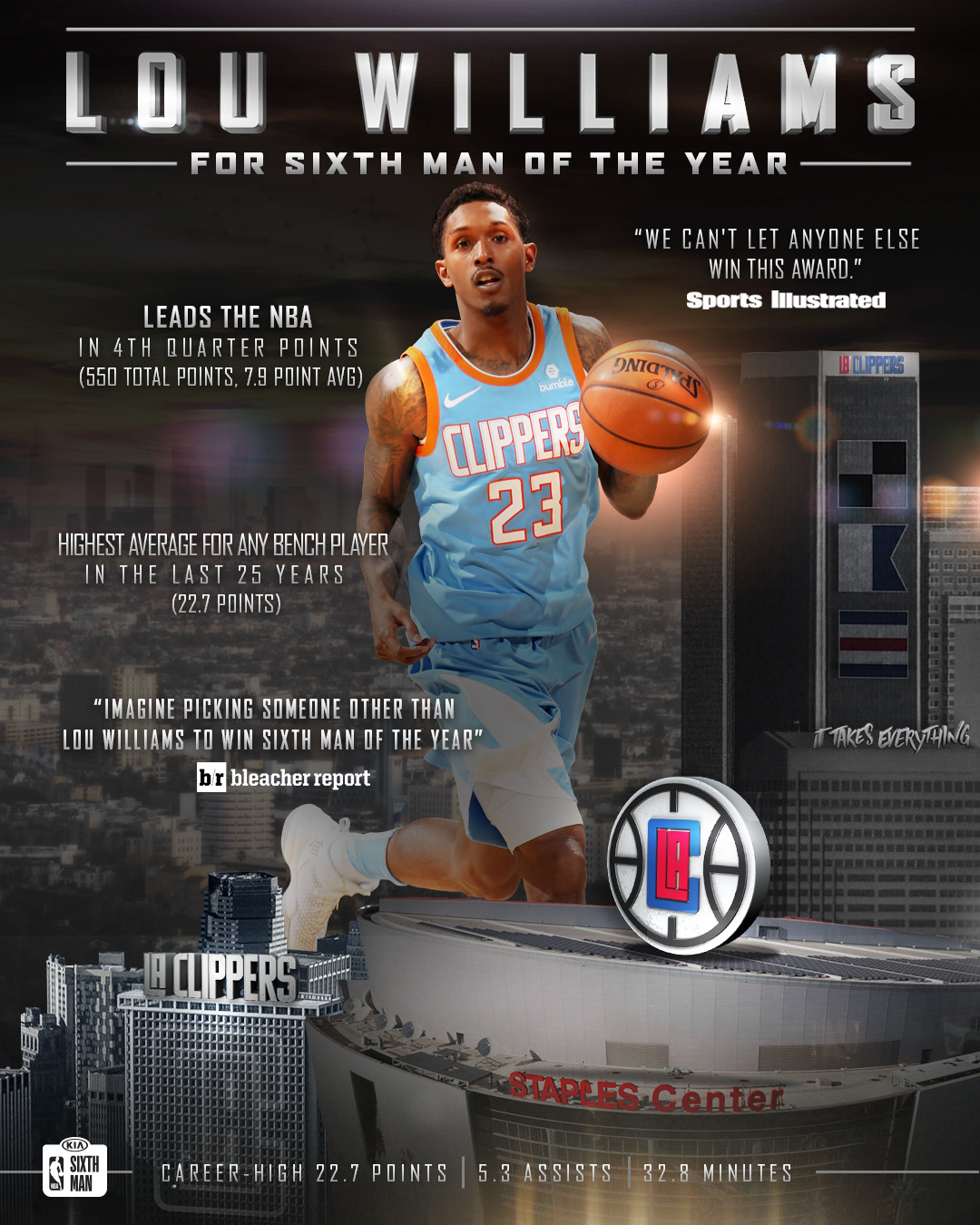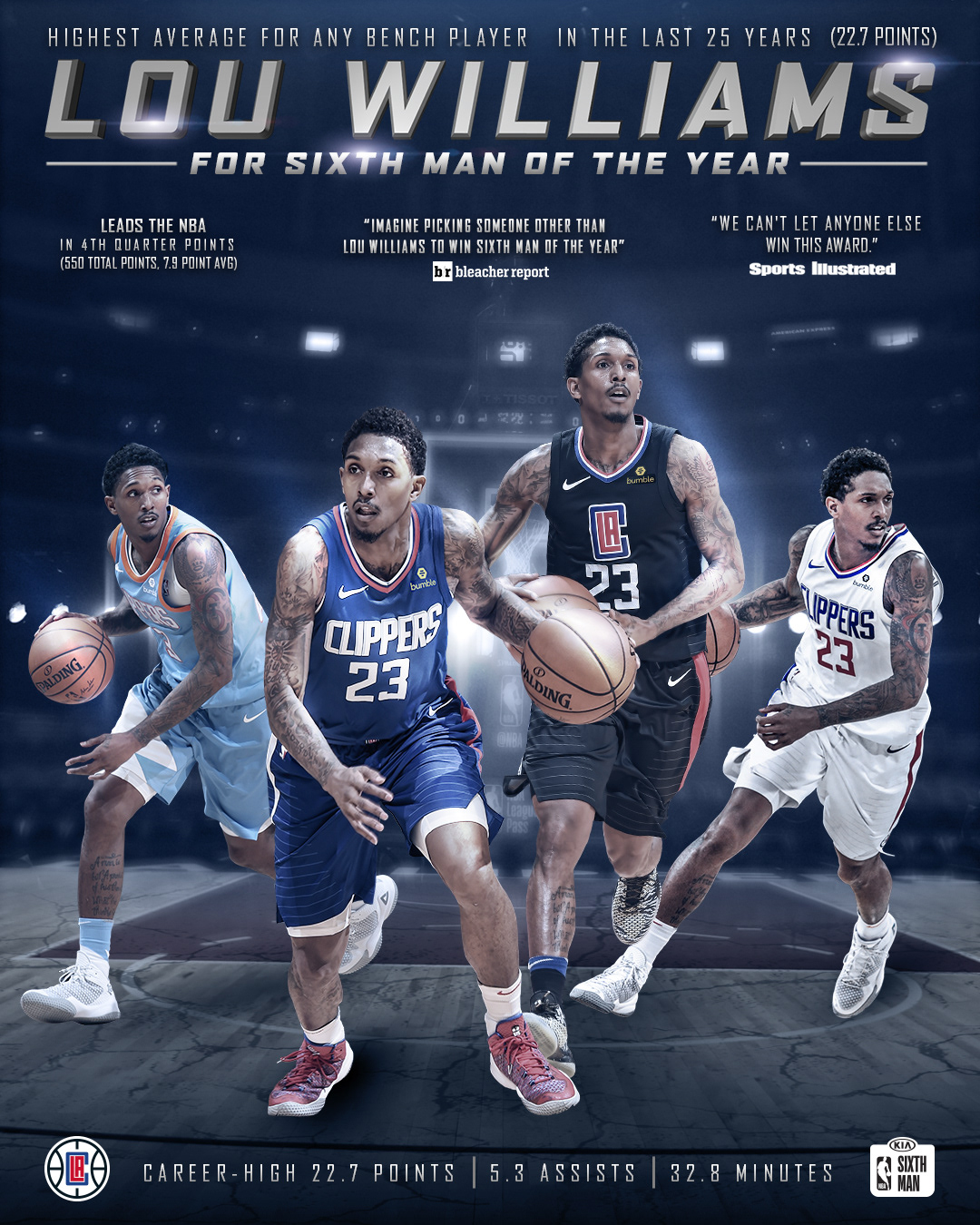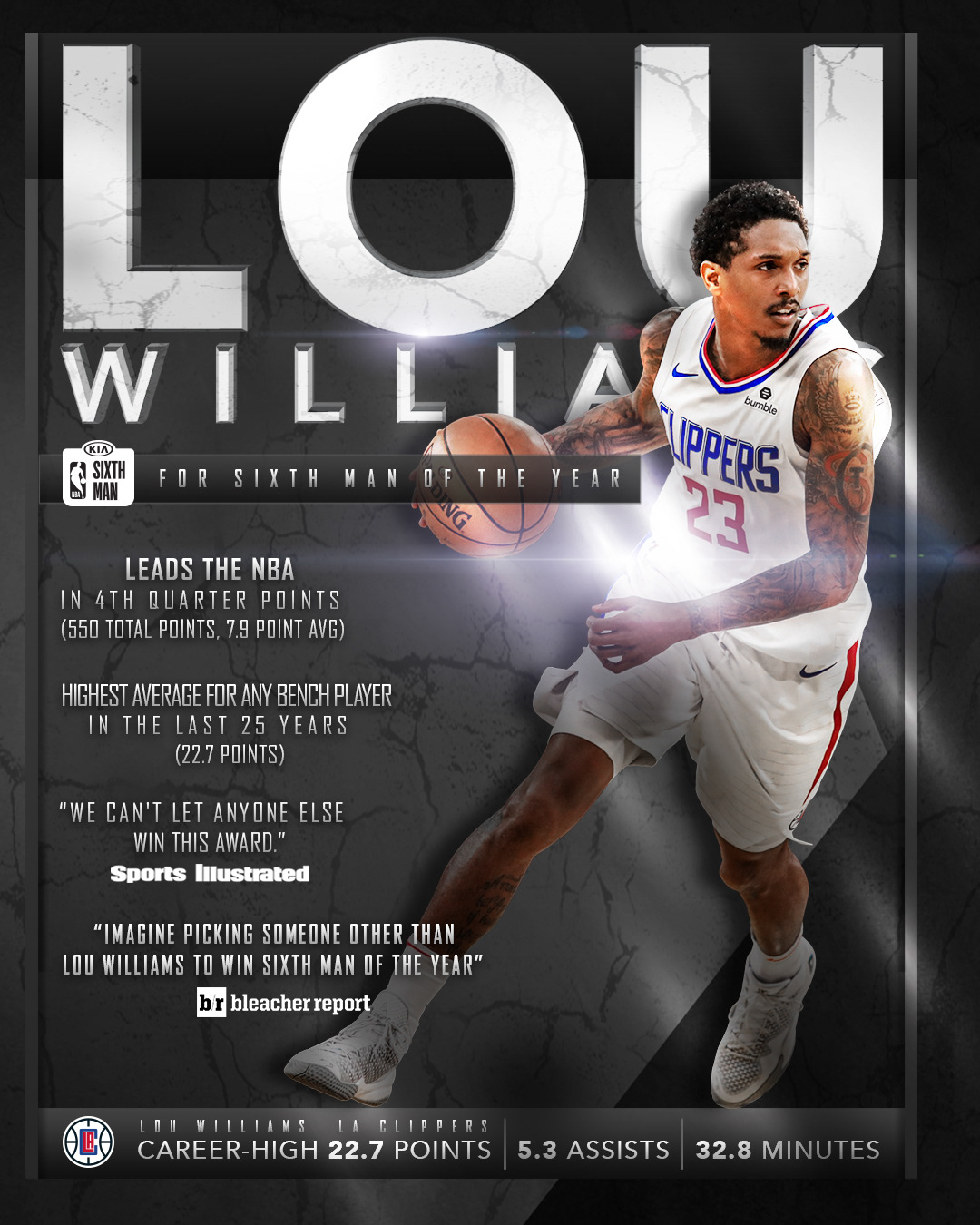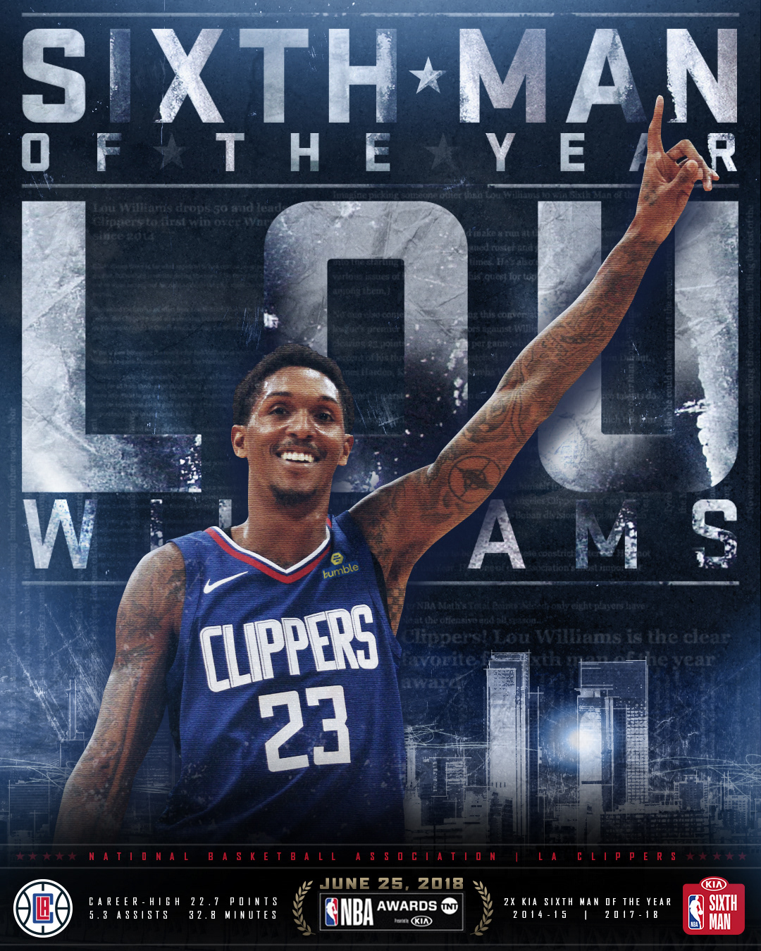 Lou Williams is the 3× NBA Sixth Man of the Year (2015, 2018, 2019)